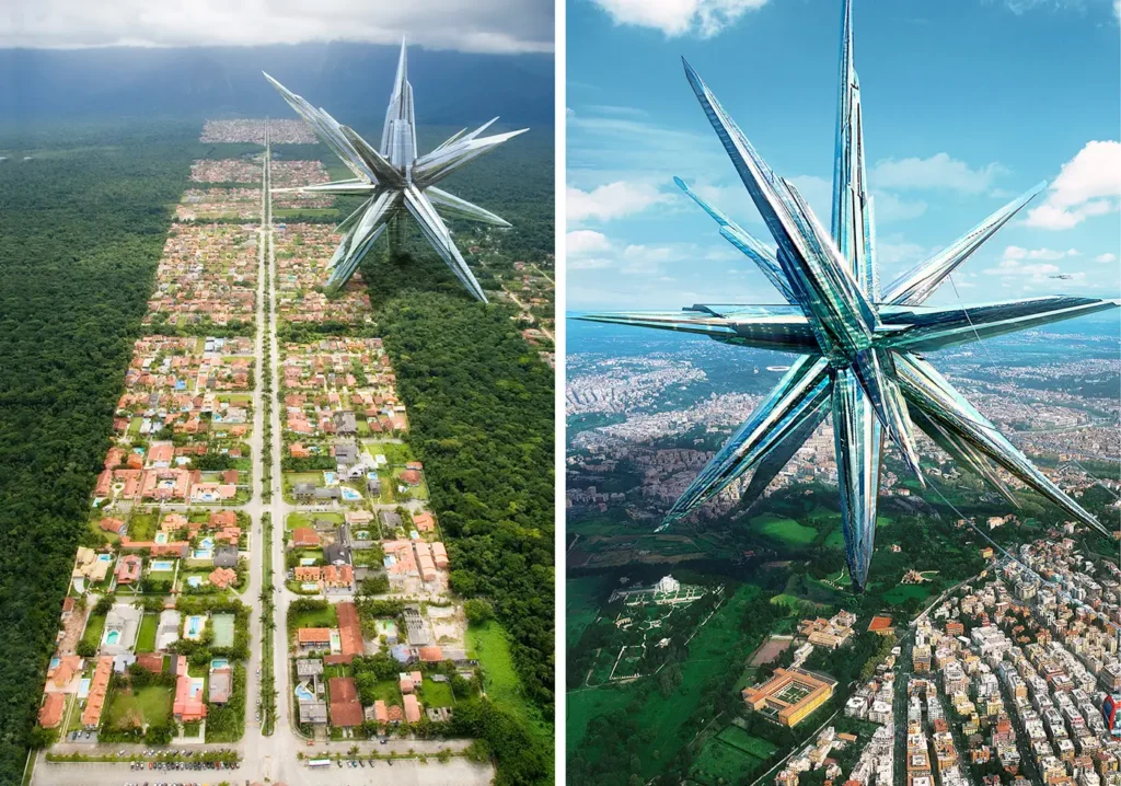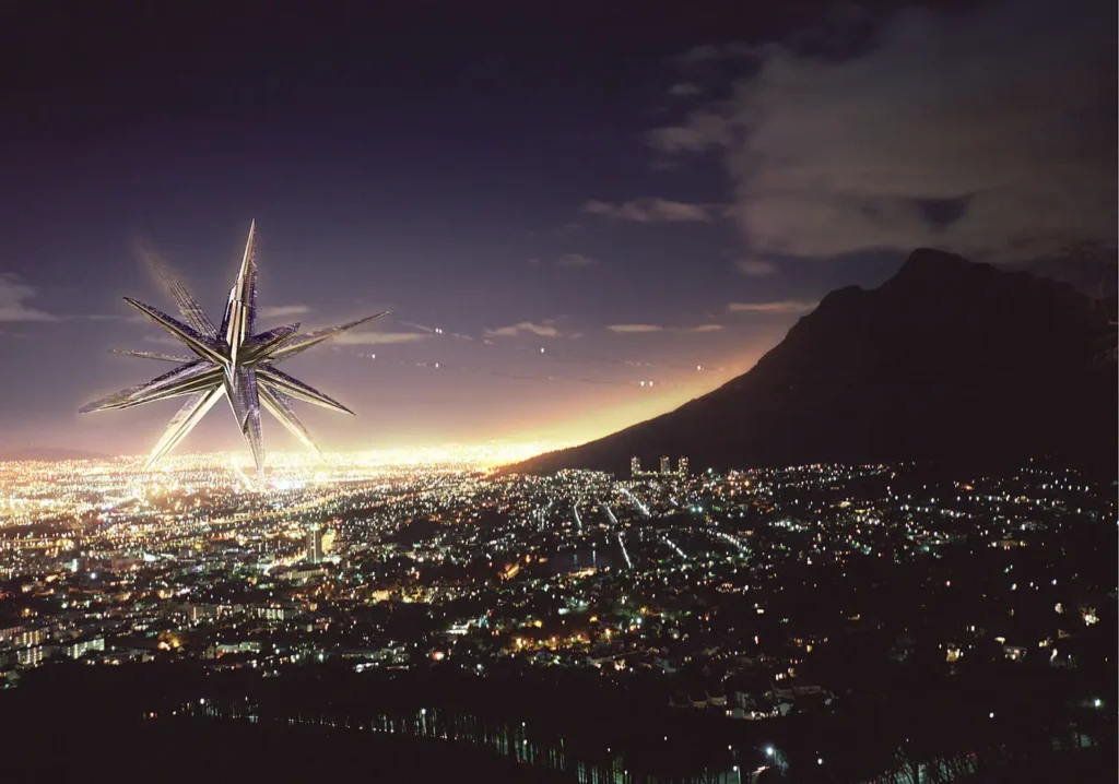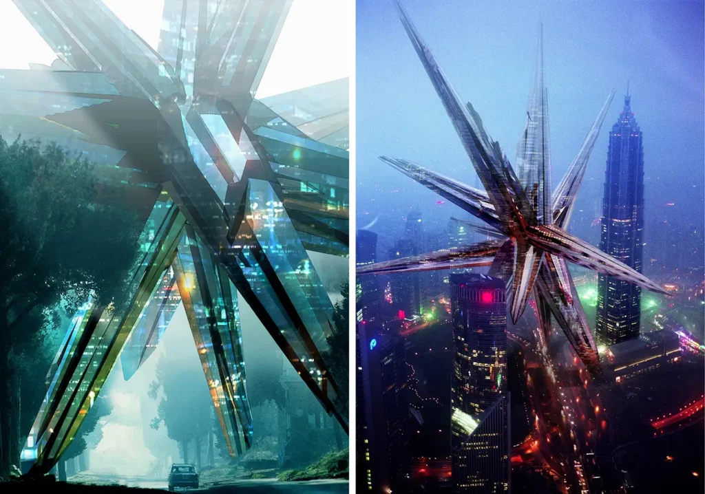 同时这是一个由它所包含内容驱动整个系统运转的新型社会。“超级明星_未来中国城”在不妥协地改变与固守原则的保守中爆发出未知的能量。它可以停留 在世界任何一个角落,与它所处的环境交换全新的激情和能量。它是一颗自给自足的行星:这里的农业中心提供所有的天然食物,不需要从地面环境中提取能源,并 且可以回收利用所有的废物。它是一个空中居所,有真正的湖泊,雪山和梯田等等自然景观,有养身中心,全行星的体育活动场所,以及饮用水源。这里的奥林匹克 中心可以每四年降落在主办城市,不需要再重复建设昂贵的体育设施。这里还有一个电子墓场来纪念在这颗行星中逝去的世界公民。“超级明星_未来中国城”是一 个梦想家园,这里没有等级制度,没有上下关系,而是一个技术与自然,未来与人文的混合物。